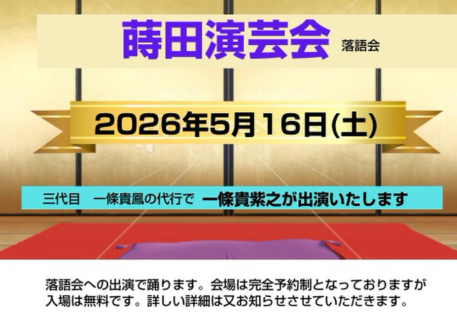 急遽 一條貴紫之が代行出演する運びとなりました。